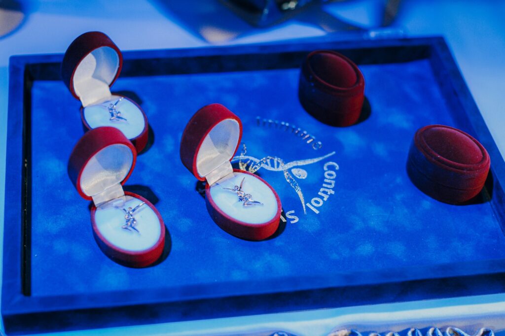 A bal oldali képen (telefonon alul) kapom meg a Tanácsadói manager szint eléréséért (melyet 2023. áprilisban értem el) járó arany kitűzőt egy brillel, melyet Baranyai Antal kereskedelmi igazgató ad át. 2023. május 21-én került erre sor, az N.I.C.S. Zrt 8-ik születésnapi buliján. Íme az arany kitűzők:
