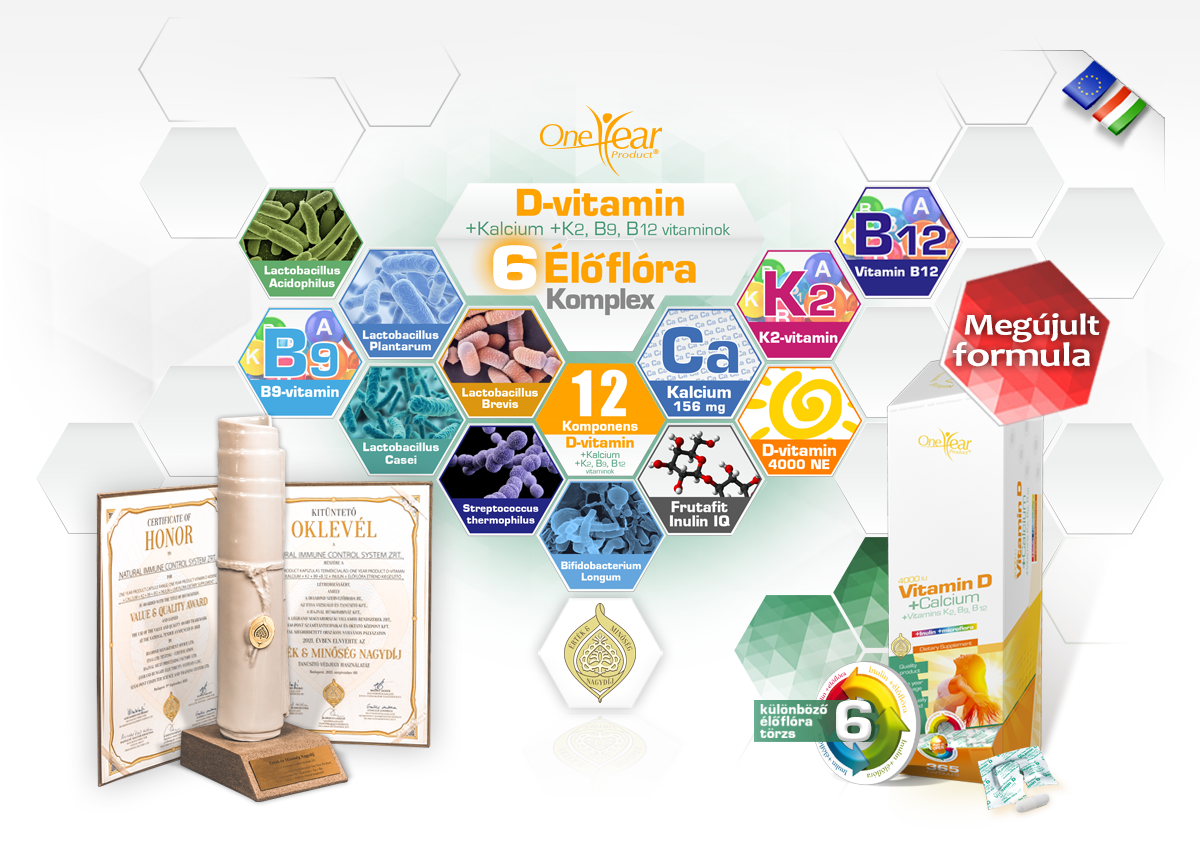 One Year Product D-vitamin 4000 NE + Kalcium + K2,B9,B12 vitaminok + Inulin + élőflóra