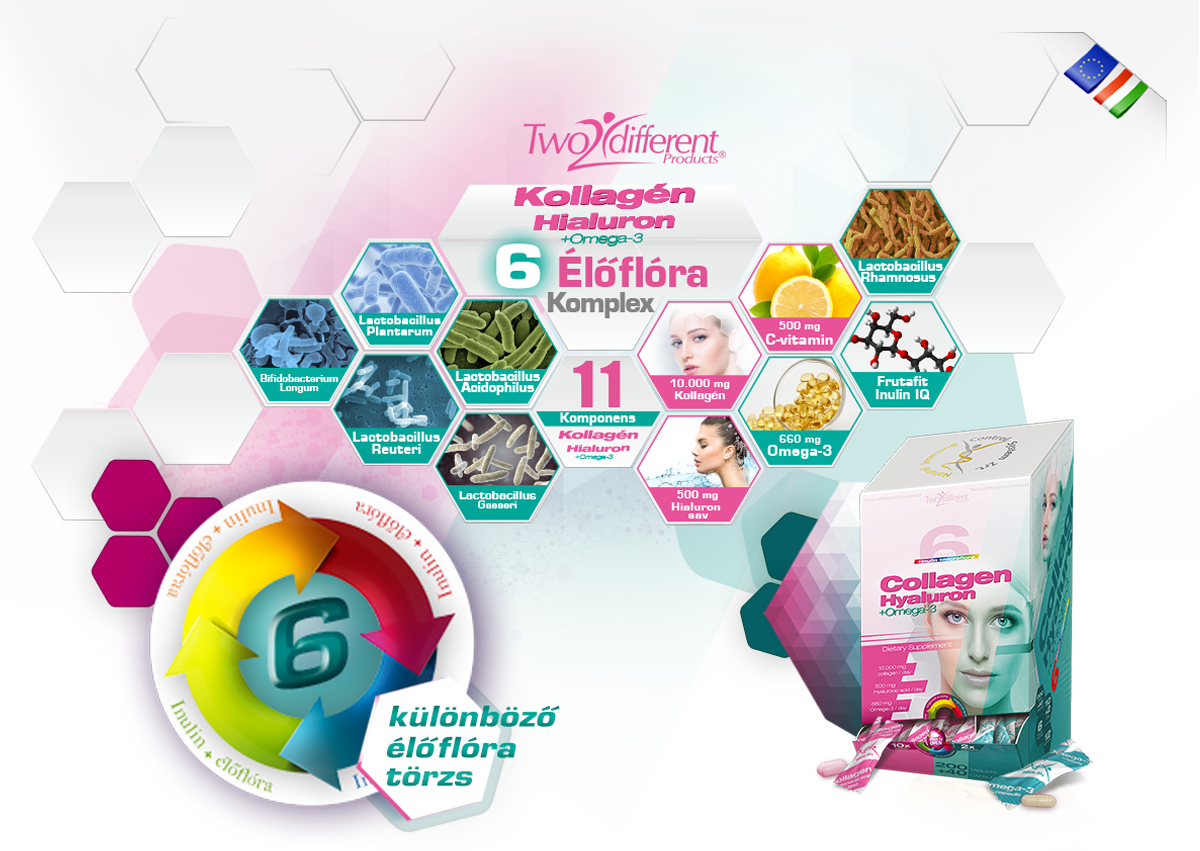 Innovatív kezdeményezésként vezetjünk be a Two Different Products termékkategóriánkat – a két eltérő terméket kombináltan tartalmazó, egyedi termékcsoportunkat. Ez a vadonatúj koncepció lehetővé teszi, hogy egy csomagon belül a termék-összetevőknek megfelelően választott, két eltérő technológiával készült terméket, kapszulát és tablettát egyszerre kínáljunk. A tablettázott forma biztosítja, hogy a nagy térfogatú, de a gyártás során fellépő nyomást jól viselő hatóanyagok kompakt módon elférjenek a tablettán belül, míg a megszokott kapszulázott kiszerelés garantálja, hogy az élőflóra törzsek életképes formában juthassanak fogyasztójuk szervezetébe.